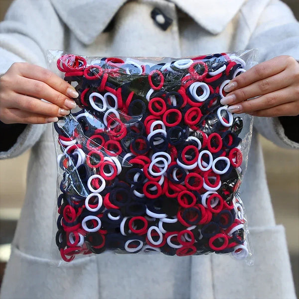Dale un toque de color y estilo a tu look diario con este Pack de 50 Lazos Elásticos de Colores 🌈.